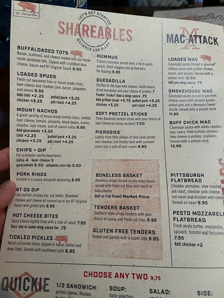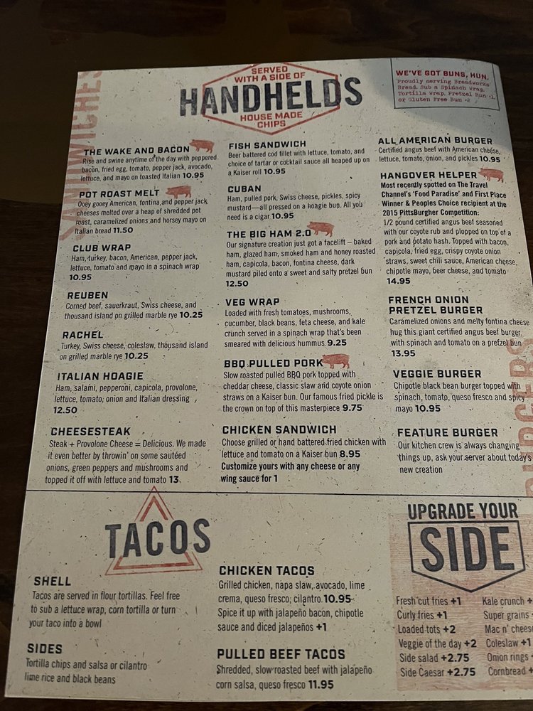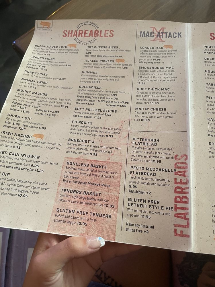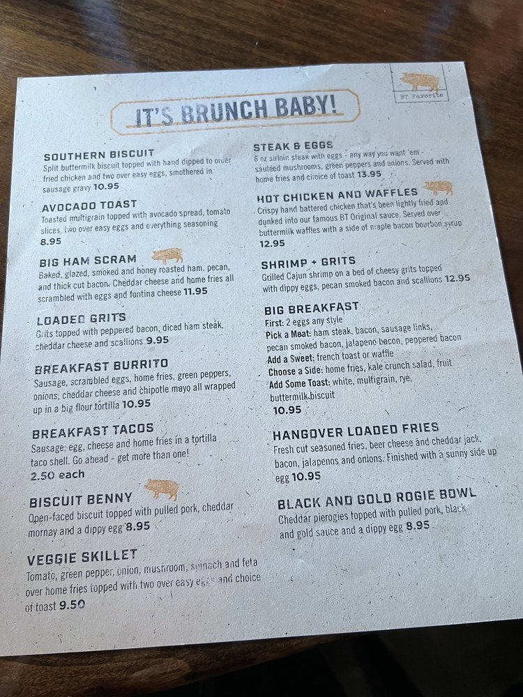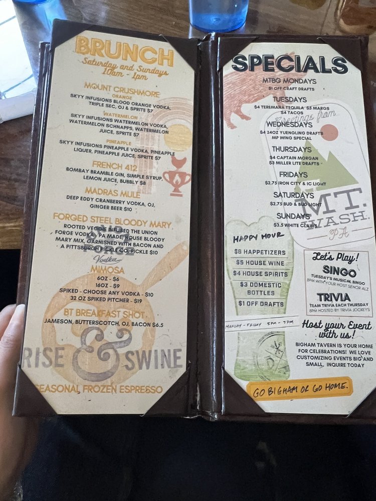 Introducing the menu at Bigham Tavern, a beloved spot in Pittsburgh offering a diverse range of dishes. Known for their loaded fries, buffalo chicken mac n cheese, pierogis, and flavorful wings, this pub-style eatery is a go-to for satisfying comfort food. Customers rave about the friendly service, vibrant atmosphere, and tasty cocktails. From brunch options like the Black and Gold Rogie Bowl to trivia night treats like the U.S.S Bigham Italian Sub, there's something for everyone at this women-owned establishment. The extensive menu, including vegetarian options, paired with a full bar and happy hour specials, make Bigham Tavern a must-visit spot for a casual meal, a night out with friends, or even a family gathering. Don't miss out on their unique flavors and welcoming vibe.